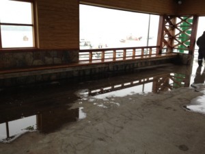 Para Sergio Mayorga, dirigente de los pescadores de Dalcahue, al parecer la obra la diseñó alguien que no sabe de lluvia, pues los portales de acceso al terminal están ubicados hacia el norte. “De verdad es vergonzosa la obra, parece que la hizo gente de Iquique o de donde no llueve nunca. En primer lugar se gotea de una forma impresionante. Tiene unos portalones que están abiertos hacia al norte y nosotros ya habíamos dicho que eso iba a suceder. También tiene otros portalones para el lado weste que son puertas gigantescas y al final está inundado, la obra está totalmente inundada”, dijo el dirigente, quien duda de que alguien pueda guarecerse de la lluvia o el viento en ese lugar.