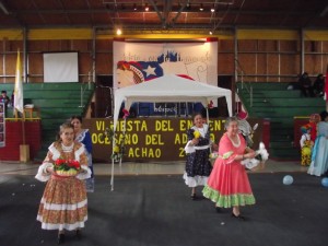 Bailes chilotes, cuecas, dramatización, zamba, vals e interpretaciones en guitarra, fueron parte del compartir de la celebración realizada en el Gimnasio del Liceo Ramón Freire de Achao .