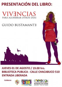 Por otra parte, a las 19.00 hrs. en la Biblioteca Pública el autor Guido Bustamante presentará su libro denominado «Vivencias para alumbrar otros días», una interesante serie de crónicas vivenciales de este conocido vecino castreño que, a través de 90 páginas, recorre distintos episodios de su vida, entregando una lección sobre temas como la diversidad sexual y la memoria colectiva e individual de una comunidad.