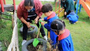 Silvia Vargas, asistente de párvulos del establecimiento, detalla que “la experiencia surgió de cuando se iba a celebrar el We Tripantu, de ahí nació la idea de trabajar con los niños y sus familias. La idea es que los niños aprendieran el proceso de crecimiento general de las plantas y también en el caso de las plantas medicinales, para qué servían”.
