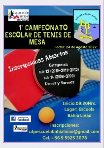 - De la Organización: El Campeonato se realizara en la Escuela Bahía Linao el día 24 de Agosto a las 09:30-12:30 Horas.