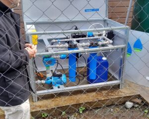El inédito proyecto se concretó gracias a la alianza que articuló la empresa de agua y saneamiento Suralis con la Fundación Amulén, el municipio de Ancud y la empresa Aguas Coihuín, que instalaron este novedoso sistema que cuenta con 2 estanques de 5 mil litros cada uno «La captación es a través de los techos, el almacenamiento en los estanques de 5 mil litros cada uno y la planta de tratamiento que tiene distintos tipos de filtros mecánicos, de carbón activado que saca olores, sabores y metales pesados. Luego viene el sistema de filtro UV, que es un desinfectante natural que mata todo tipo de virus y bacterias, con lo que tenemos agua purificada. La ley es súper clara y dice que el agua potable debe tener cloro, por lo que, en la última etapa, precisamente se le agrega cloro» explicó Christian Schmidt, representante de Aguas Coihuín.
