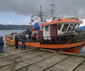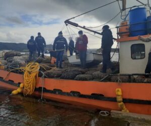 Durante una fiscalización de rutina en el Muelle de Queilen, funcionarios y funcionarias del Servicio Nacional de Pesca y Acuicultura (Sernapesca) junto a personal de la Armada, sorprendieron a una embarcación con 15 toneladas de recursos bentónicos de origen ilegal, entre choros y almejas.